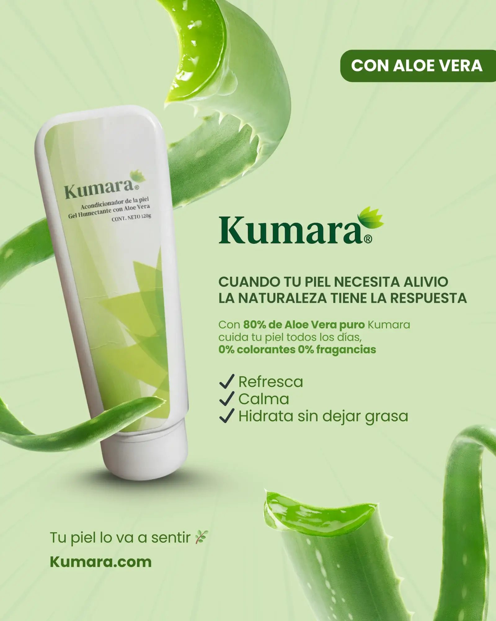 Con 80% de Aloe Vera puro Kumara cuida tu piel todos los días